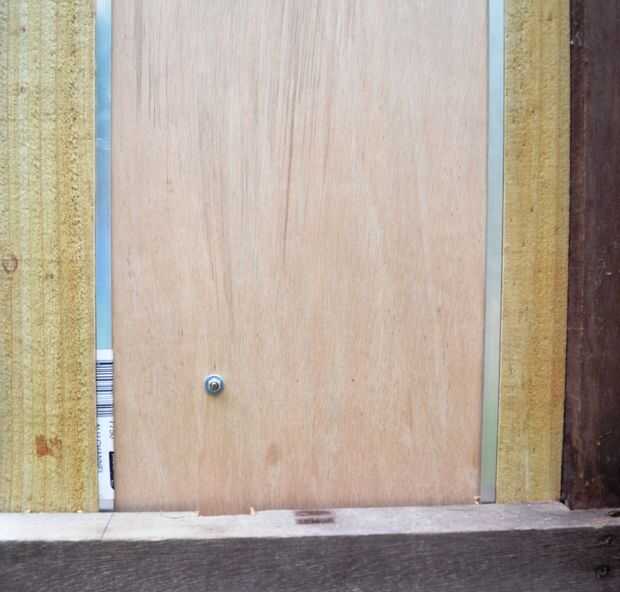 2. Corte una pieza de contrachapado a la brecha. Puede que tenga que recortar 3-5 mm de un lado de la madera contrachapada (lo hice)