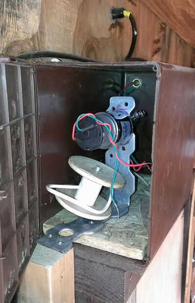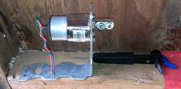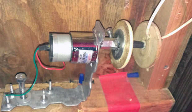 Un par de años hemos construido un gallinero.No tan diferente se podría decir, pero este viene con una contador de tiempo controlados puerta automática accionada por el sol.El prototipo utiliza un taladro de batería reciclada, el cargador y las bater
