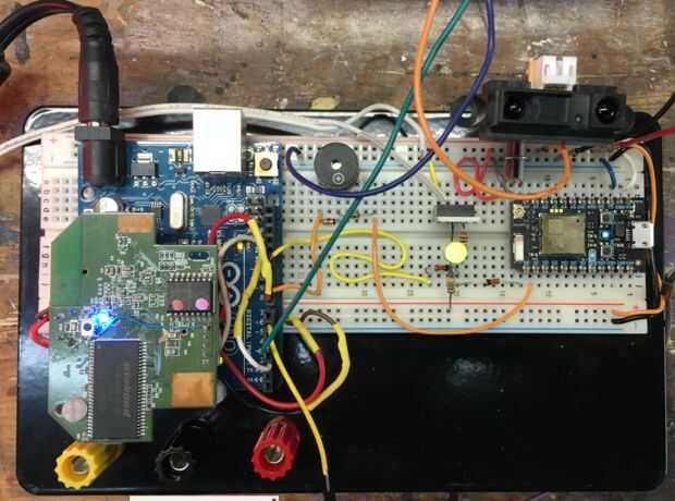 El nuevo diseño utiliza un internet chip/sistema de desarrollo llamado el fotón partícula. El sistema es que esencialmente un procesador de tipo arduino junto a un chip WIFI en una sola tarjeta del tamaño de un par de sellos de correos. El fotón es sólo 20 dólares, en comparación con $70 para el primer diseño.