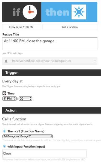 3. por último, otra idea para recetas IFTTT es automáticamente cierra la puerta en 23:00. Mi receta se muestra por encima de esto también.