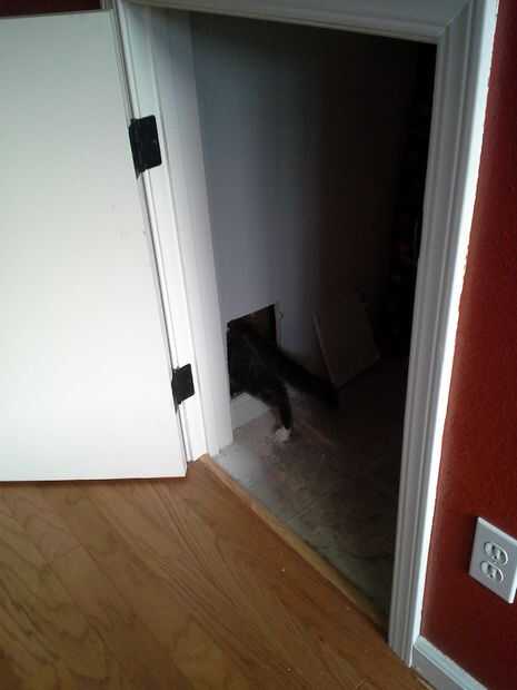 ¿tienes algún lugar, como una sala de almacenamiento donde se desee mantener una caja de litera, pero usted no puede estar seguro de la puerta siempre estará abierta? Bueno, la puerta de gato es tu solución!Construimos para nuestro gato poder llegar