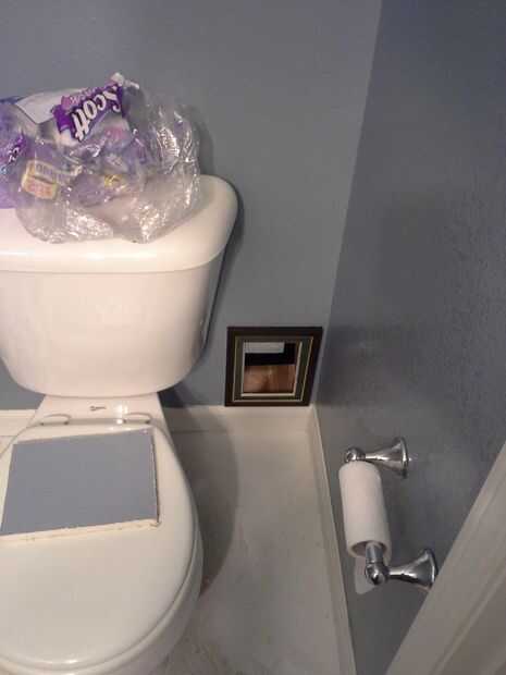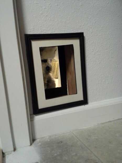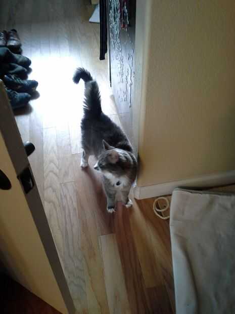 Y listo! Dos horas después de comenzar tuve mi puerta gato y Jak-Jak aprueba. Apruebo también porque ahora puedo cerrar completamente la puerta del baño. También hará un pasar cómodo si usted necesita más papel higiénico o una revista.