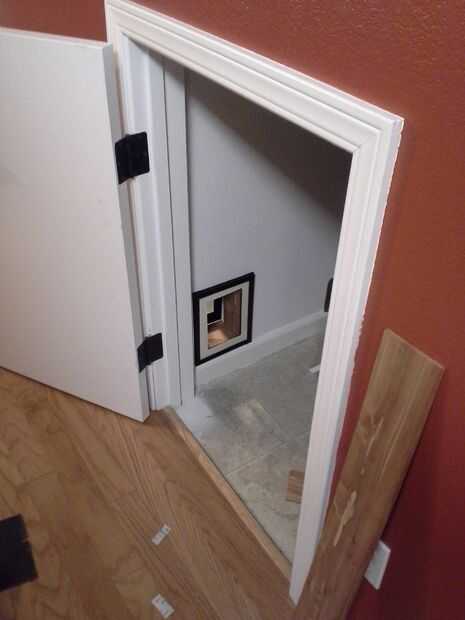 Siguiente paso es cortar la media puerta del armario de una puerta. Quiero hacer esta buena por lo que necesito para sacar la puerta y llevarlo a una casa de amigos que tiene verdaderas herramientas para la madera. Estoy pensando en una puerta hobbit redondo o una Stargate, o una reja corredera sería genial. Y una placa de identificación de potter se ven bien.