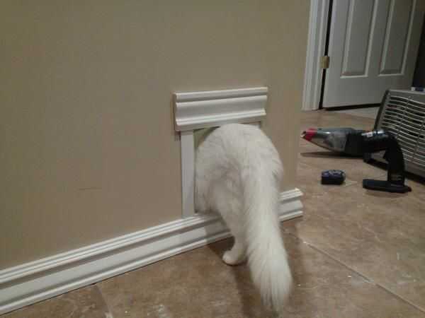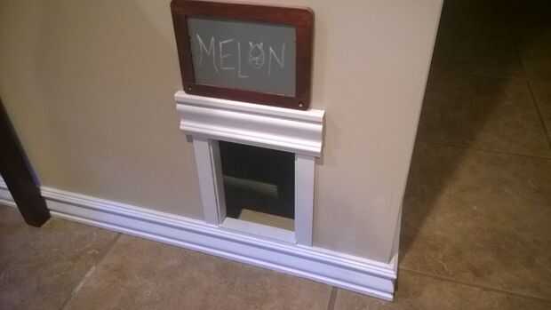 estos son nuestras mascotas, Buddy el perro y el gato de melón. Mientras que se llevan bien es importante darle melón un espacio propio. Esto también ayuda a dándonos un lugar para ocultar sus cosas de gato gente no quiere ver. Espacio perfecto es el armario bajo la escalera. Pero cómo mantener espacio valorable a ella y no el perro... Puerta de gato! Mejor aún se tomaron diez minutos y estaba libre.