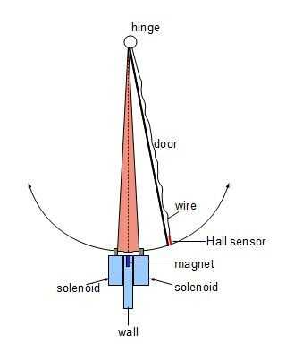 Asegúrese de en el estado de reposo, la aleta está centrada entre los dos solenoides. En el cuadro que se encuentra en la zona roja alrededor de la línea de puntos por la mitad. Para lograr esto ayuda a que no hay objetos pesados colgando de un lado y utilizar una bisagra con poca fricción.