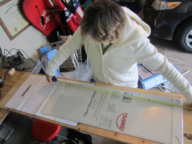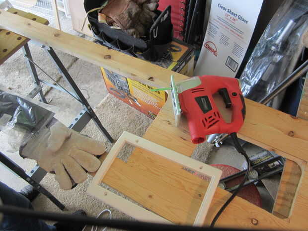 Ahora que tiene las dimensiones de la ventana hacia abajo, sólo necesitamos el panel gato puerta y cristal en el tablero un mapa. Después de cortar el tablero a la longitud correcta simplemente centra la puerta de gato y cristal donde parecía que podría funcionar, nada demasiado preciso. La puerta de gato tenía una plantilla para el tamaño de orificio de la puerta. Trazado en el panel de cristal y entonces me mide 3/4 '' en el borde de las marcas para crear un labio para el vidrio en.