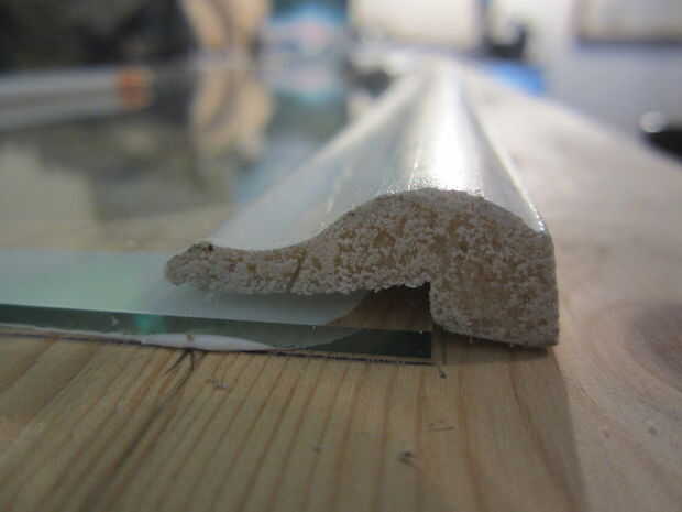 Primero puse abajo de una tira de calafateo para sellar la ventana y añadir una pequeña tensión superficial para mantener en su lugar. La parte real que protegerá la ventana es la tapa de fundición. Como se puede ver en las fotos, la tapa tiene un borde que permite el vidrio en el hueco y se mantiene en su lugar, mientras que la moldura se puede ajustar hacia abajo sin poner presión sobre el vidrio.