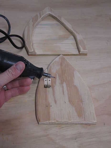 Cuando el marco/soporte/jamba están secas, arena todo liso hasta parece todo una sola pieza. Luego limpie todo con alcoholes minerales. Añadir su pomo colocando el botón de muebles en la parte delantera con un tornillo.