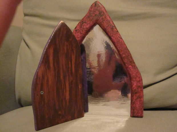 hacer estas puertas diminutas de arcilla polimérica.  Cada uno tiene su propio gancho de alambre empotrado y puede ser colgados de alfileres de costura recta en lugar de clavos.  Cuando le doy a puertas, son acompañados por la leyenda que escribí:Muc