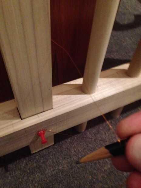 Utilice un alfiler, lápiz y un trozo de cuerda para crear una brújula cruda. Esto le permitirá marcar el radio de la parte superior de la puerta. También, marque una línea en la parte inferior de la puerta para asegurarse de que tenemos una cuadrado inferior.