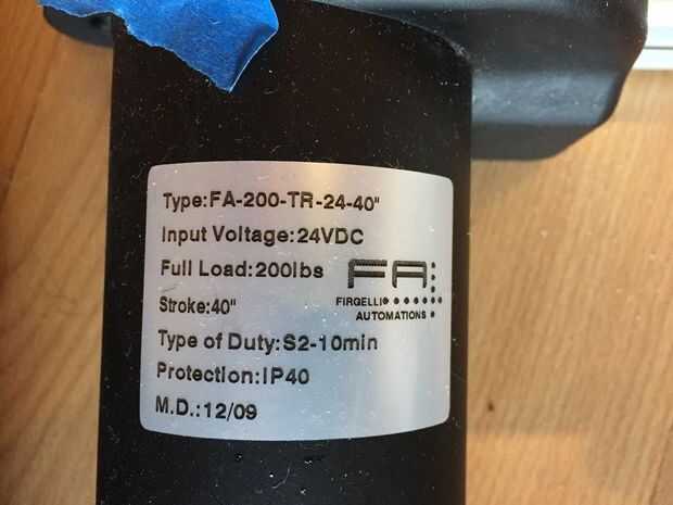 El actuador linear es un automatización de Firgelli 40" longitud sigue el actuador linear de una fuerza de 200 libras. Estoy adivinando, pero pensé que si tuvo más de 200 libras de fuerza para deslizar una librería en el rodillo, algo andaba mal.