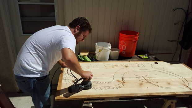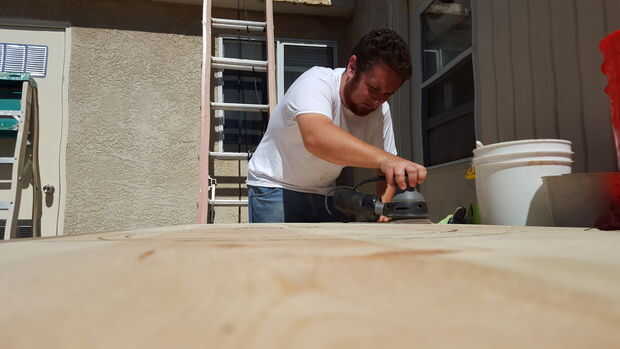 Después de la tinción, tuvimos que lijar todas las piezas donde la mancha sangró a través y liso para deshacerse de