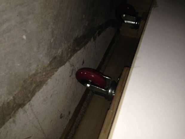 Se atornille directamente en el estante inferior. Estos sostenga el peso de los libros y reducirá el estrés en el marco de la puerta. Yo simplemente extiéndalas uniformemente en toda la parte inferior. Necesitaba añadir cierta altura con restos de madera.
