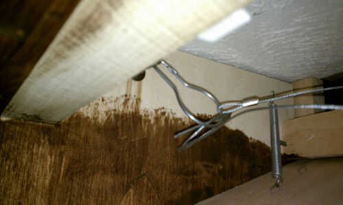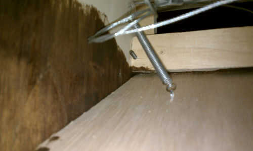 Esta habitación es el mejor espacio en caso de tormentas, por eso he querido un mecanismo de bloqueo mecánico en caso de cortes de energía. Para llegar en uno uno necesita tener un elemento magnético. Cuando esté colocado correctamente, pegaremos el imán. El panel deformado un poco al corte y terminó manteniendo apretado el pestillo hasta que se aplica un poco de presión. Abra ambos enganches y voila oculto espacio. Resortes en la parte de atrás mantienen el panel de caer pero todavía le permiten abrir. Con el panel abierto, vemos dos cables. Tire una cerradura y el otro para desbloquear. Esto funciona muy bien ahora, y si quiero ir con un abrelatas clásico "libro" debe ser un mod bastante simple.
