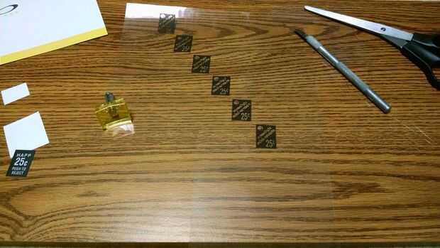 Asegúrese de que usted tiene una impresora láser para este proyecto, como se requiere para imprimir en una transparencia. Con papel normal, imprimir un borrador de su dispositivo, para que pueda obtener el tamaño adecuado para la inserción de monedas. No te preocupes si tarda varios intentos para conseguir 'just right'. Una vez que lo tienes como gusta, imprima un final copiar en la película de transparencia y corte de la página de transparencia con unas tijeras afiladas o su afeitadora / cuchillo X-ACTO. Realmente terminé impresión dos y colocándolos uno encima del otro antes de insertarlas en el botón de la moneda. La razón de esto es que la iluminación trasera de la cubierta de la ranura de moneda una inserción demasiado pálido. Dos pudieron caber en el botón de moneda y lo hizo mucho mejor. También he añadido un trozo de papel blanco detrás de las dos transparencias para crear mayor opacidad. Tendrás que experimentar con esto a ver qué funciona mejor.