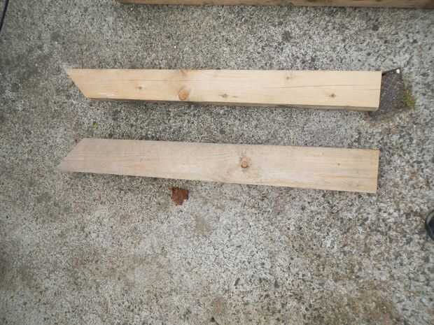 Los montantes verticales, de los rieles inferiores de una tarima, fueron cortadas a la misma altura que el granito que significa cuando penetran igualmente el anterior. El ángulo superior es para el agua escurr (modificado más adelante para ver mejor)
