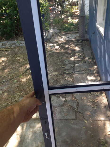 Colgué la puerta con un kit de puerta de pantalla que tengo de Lowes para $6. Incluye 2 bisagras de resorte, una manija y un tornillo de gancho y ojo para "bloquear" la puerta. Como se puede ver en la foto he añadido tiras de pintado de la ventana trim (aproximadamente 3 dólares por 8 pies). En todas las obras puerta grandes! Las bisagras Asegúrese de que la puerta se cierra detrás de ti y ahora tengo una gran brisa cruzada en mi casa!