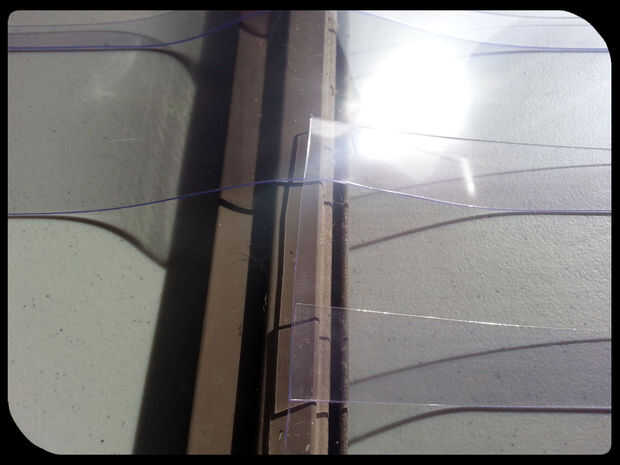 Permitiendo suficiente superposición, viaje de la parte inferior de las tiras con las tijeras, para cortar derecho y hasta completamente a través de la puerta.