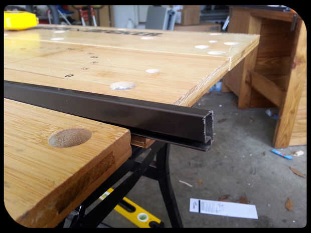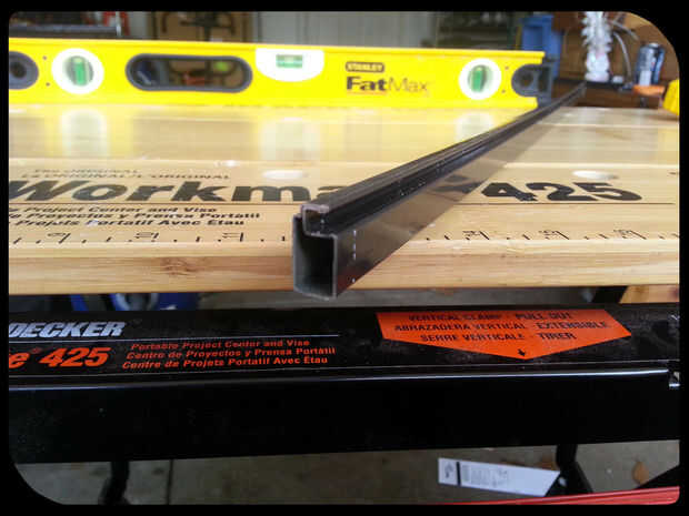 Utilizando uno de los canales del kit de pantalla, medida de la anchura total de la puerta de pantalla, cortan el canal a la longitud como en la imagen. Asegúrese de no solo medir el interior de la puerta de la pantalla, como se necesita un canal extra para fijar al marco de puerta de pantalla.
