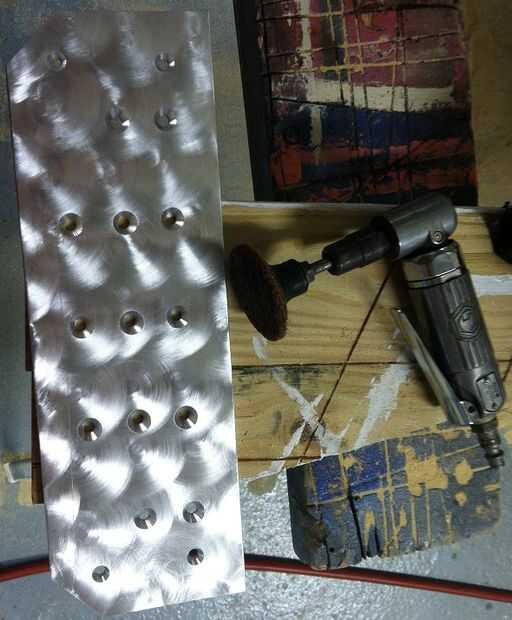 encontré esta pipa en mi garaje y pensé que sería un buen manejo. la taladré con una broca de fregadero de contador para que se vea un poco más futurista. y para hacer una placa de empuje de que Toke un pedazo aluminio plano había cortado a la medida del fregadero contrario para hacer algunos agujeros. luego usé mi empaque limpieza herramienta para darle un aspecto diferente.