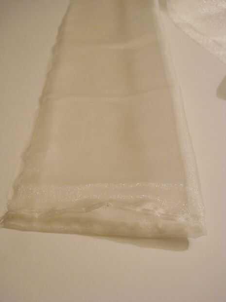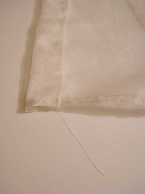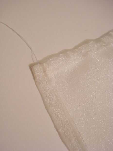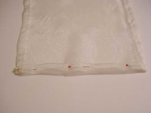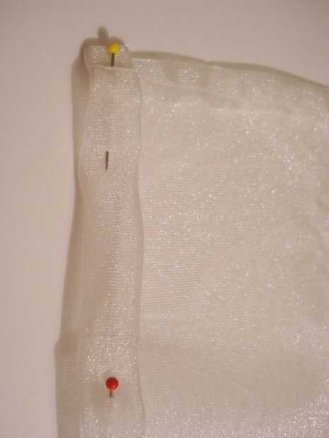 Las piezas de la 2 cortina deben ser dobladas sobre en la parte superior, cubrió a y que para que la barra de la cortina tiene un lugar en diapositiva (imagen 6). Asegúrese de que una vez que se dobla la parte superior, es la misma longitud que las piezas del panel lateral.