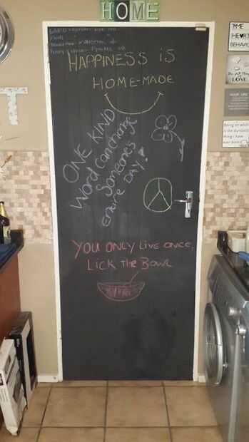 Así que un rato de nuevo he pintado la puerta de la cocina con pintura de pizarra "Pantera negra" para hacer notitas tontas.