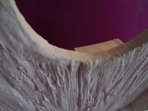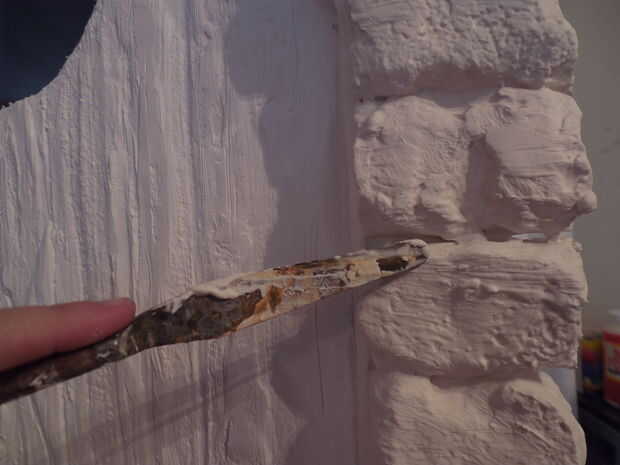 Después de que las rocas han sido recubiertas puede tomar un pequeño cuchillo de paleta o brocha y aplicar más textura como el yeso empieza a. Yeso interior borde del círculo de ventana en este momento.