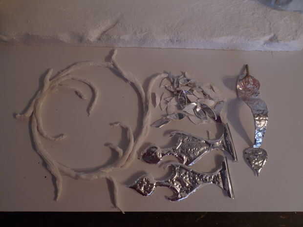 Un poco pequeñas de yeso de la mezcla y cubrir la parte posterior de las hojas, las bisagras y manija (forman en primer lugar, como que se traba en la forma algo.)