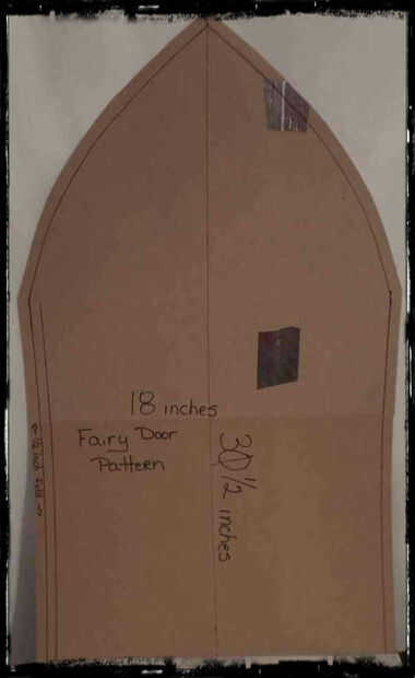 La puerta es 18 pulgadas x 30 1/2 pulgadas, crear un borde de 1/2 pulgadas todo en el interior del trazado exterior que esto se dobla hacia atrás y la espuma se pega en. La ventana es un círculo de 7 pulgadas, con un borde plegado hacia adentro así, esto le dará a la puerta una ilusión de espesor, puede Agregar una adicional tira todo el camino alrededor del interior borde del área de la ventana, para crear más grueso de la puerta.