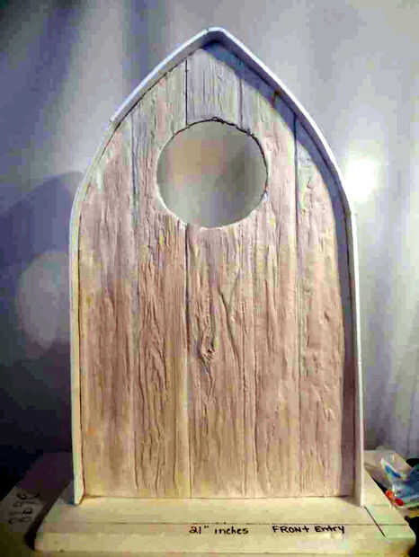 Ahora que la puerta está seco y tira de la espuma se ha agregado. Coloque un pedazo de espuma 21 pulgadas x 10 pulgadas x 1/2 pulgadas Este es el umbral y el apoyo en la espalda. Marca el centro de la 21 pulgadas y la puerta trasera 3 1/2 pulgadas en el centro.
