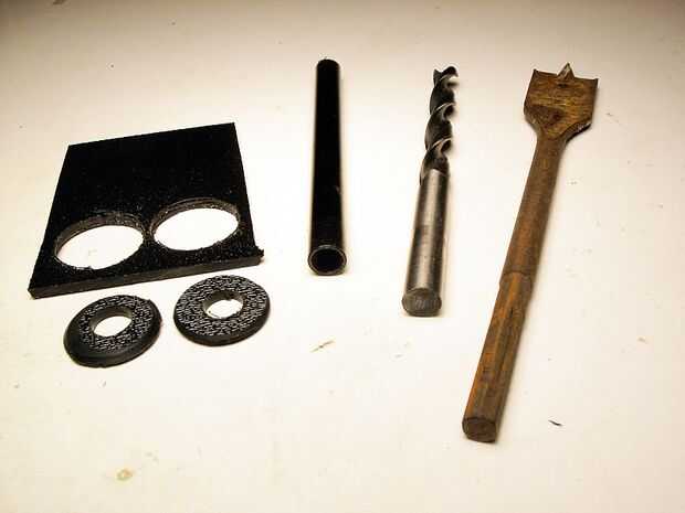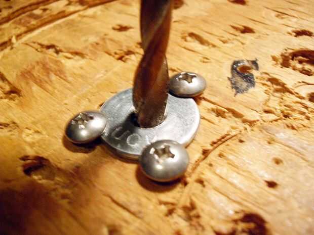 - Cuidadosamente centro su 5/16" taladro del pedacito y taladrar el orificio central.
