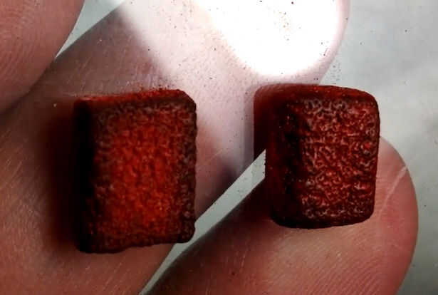 Empezar haciendo trozos iguales de tamaño. Más fácil hacer rodar hacia fuera una cuerda y cortar piezas iguales. Luego darles forma en pequeños ladrillos. Toque en él en todas las direcciones con un cepillo de alambre para darle una forma más cuadrada. Agregue un cierto color con pasteles y alternar con el cepillo de alambre. Agregar el color que alisar un poco de la rugosidad. No te preocupes si el color es plano y la textura también áspera cuando termines. Después se sienta un poco, algunos del color filtra en e iguala hacia fuera.
