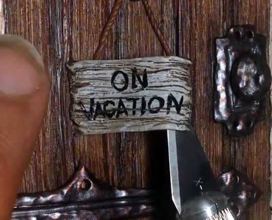 Sentí que la puerta necesita una señal. Así con la otra caña de madera, deslice un trozo y textura ser más maltratado y seco cepillado algo de blanco para darle un aspecto "lavado blanco", entonces pintados en las letras. Con una cuerda fina y una pequeña bola gris oscurezca con alguna pintura metalizada gris gunmetal, fijarse y luego estaba listo.