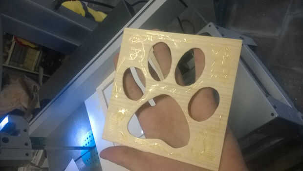 - Usando pegamento multiuso, pegamento las dos decoraciones en la tapa de acrílico, uno en un tiempo (tercera y cuarta imagen). Para agregar fuerza de sujeción mientras se está secando el pegamento, apilar unos cuantos libros, cajas... en la parte superior.