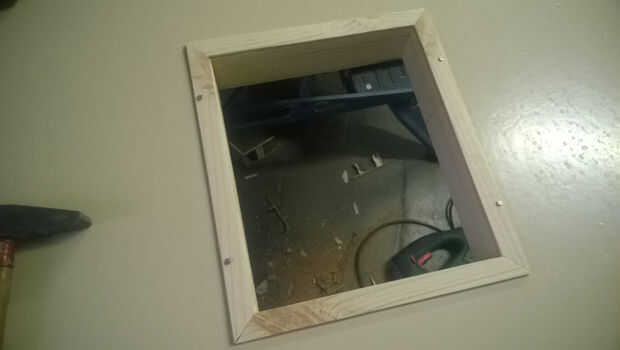 Ahora tenemos nuestra puerta, pero todavía tenemos que fijar a la puerta. Si usted tiene una puerta de madera sólida, sólo cortar el hueco de la puerta y colocar directamente la puerta a él. Si usted tiene una puerta de huecas (relleno con un patrón de cartón dentro), primero tendremos que hacer un marco de puerta (primera imagen):