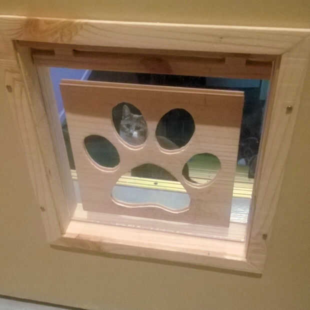 - Todo hecho; la puerta está listo para la acción! Si todo está bien, la puerta puede moverse libremente sin tocar el marco de la puerta. Tiempo para poner su aleta a la prueba definitiva y ver lo que tu mascota piensa de su obra :)