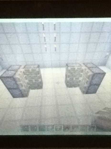 Hacer una torre de dos pistones de ambos hacia la misma manera. Luego realizar otro pistón dos torre justo al lado frente a la misma manera. Entonces otro puesto dos pistón directamente torre infornt de la torre en la parte posterior. Asegúrese de que está mirando hacia el frente. Se forma una v luego hacer lo mismo dos bloques de distancia hacia en el primer v. Se verá como la imagen.