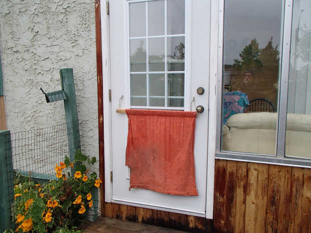 Yo había cercado cada pieza de lienzo por lo que se cada uno de aproximadamente 6" más ancha que la 21" abertura en la parte corrediza de la ventana de la puerta.