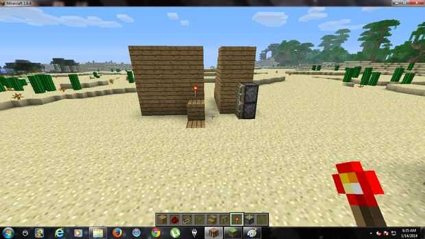 movimiento en la parte de escalera y la pared. y colocar un bloque en la base de la pared. luego coloque una antorcha de Redstone en el muro sobre el bloque coloca (no colocar en la pared o lo contrario no funcionará)