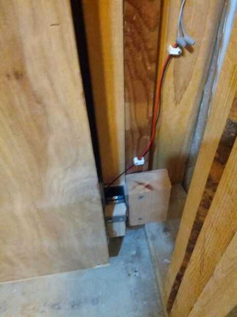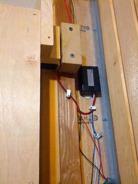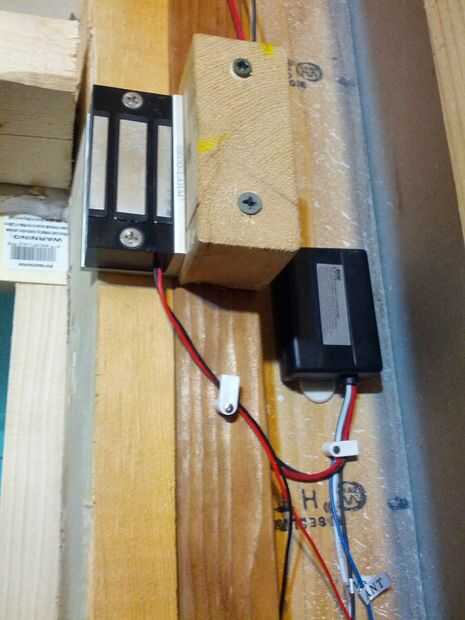 El ejecutar de un adaptador de alimentación de 12v y participan cuando se suministra corriente a los bloqueos. Cuando desea abrir la puerta necesita cortar la energía a las cerraduras. Las cerraduras de cableado a un interruptor es una forma de hacerlo, pero entonces usted tiene que ocultar el interruptor en algún lugar. Tal vez usted puede hacer una estatua fría con una cabeza de elevación que tiene el botón, pero fui con un conmutador de RF inalámbrico que te permite convertir las cerraduras y con un llavero. El controlador de RF entre la alimentación y las cerraduras y puede montarse en el lado secreto de la puerta. No me preguntes Dónde guardo el llavero, no te estoy diciendo.