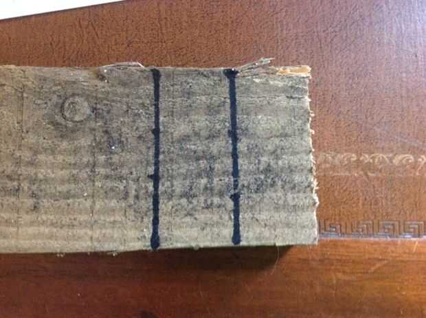 Comienzo con una broca pequeña y luego hasta una más grande para evitar splittingCut el lápiz para que tengas al menos 1 cm más que el ancho de la tira.