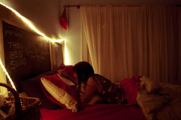una cama una puerta vieja pintura de pizarra (esto viene en botes de spray, $7 o en cuartos, $10) cinta de pintor algún papel viejo tornillos un taladro