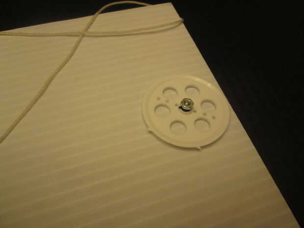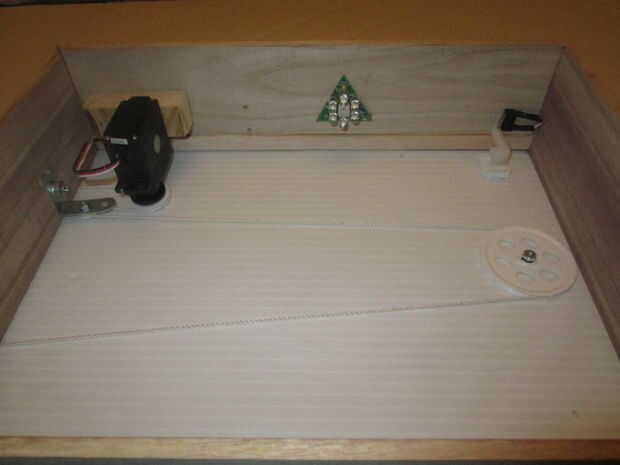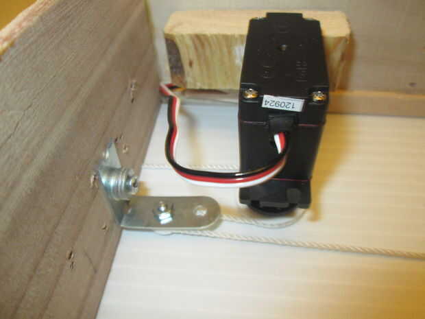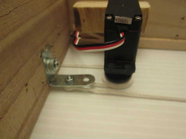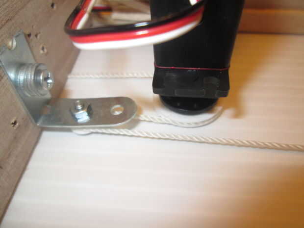 Una vez el tensor, atar un extremo de la cuerda con el tornillo superior y Envuélvala alrededor de la polea del tensor, alrededor de la polea grande y atar el otro extremo en el tornillo inferior. (deje un poco flojo para el motor). Ahora aquí está la parte difícil, envuelva la cuerda alrededor de la polea del motor y poner la tensión en la cuerda tirando el motor de la polea del tensor y una vez que tengas buena tensión en la cuerda (no sueltes) Atornille el motor en lugar con a perder la tensión en la cuerda. (Véase pix 1, 2, 3, 4 y 5)