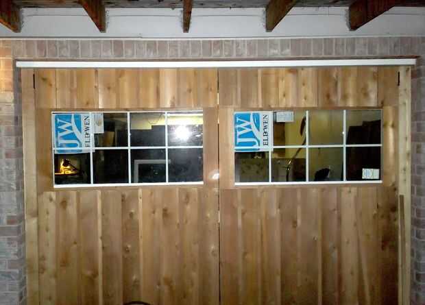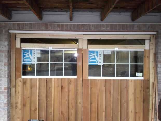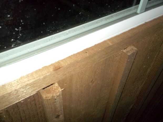 1) cortar y encajar los montantes de la parte superior de los tableros existentes en la parte superior de la abertura de la ventana.