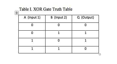 La puerta de la exclusiva o (XOR) se utiliza para comparar dos bits; la salida de una puerta XOR es alta (1) sólo si las dos entradas son diferentes. El comportamiento de la puerta XOR se muestra en la tabla I.