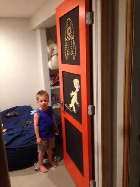 Paso 1: Elegir puerta de Yer, Get Yer suministros Había una obra de arte de kiddo pegadas a la puerta de la despensa, y en su retiro un poco considerable de pintura salió con él. En lugar de sólo pintar el pelado lugar, pensé que haría que el panel e