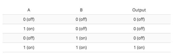 Para todos los ejemplos a continuación nos dejaron asumen que tenemos 2 entradas: A y B y que A y B ambos tienen 2 Estados posibles: encendido o apagado, 1 o 0 en términos binarios.