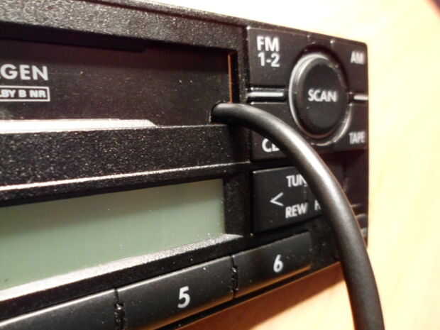 Encienda el volumen bajo para el dispositivo y el radio/casete para probar el audio.
