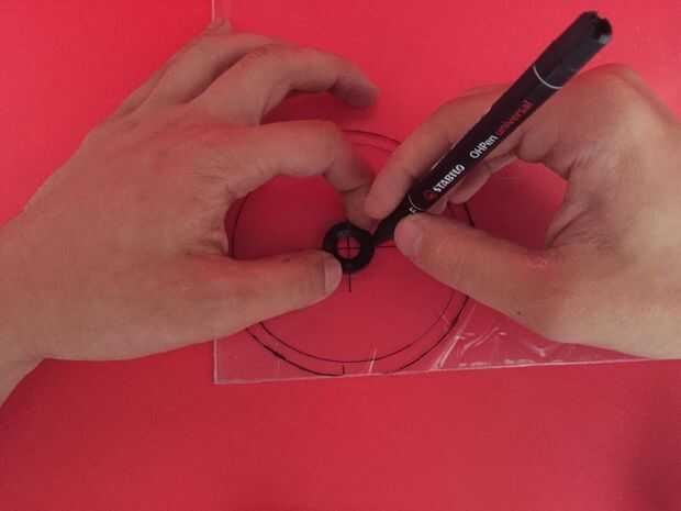 Finalmente tome el anillo plástico negro quitado antes y marcar los puntos para los cuatro tornillos.