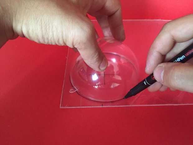 Tome una mitad de la película de plástico transparente de la bola y la pongo en una hoja de plexiglás.